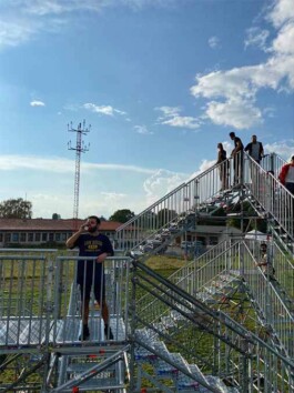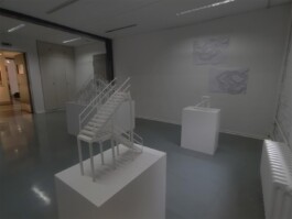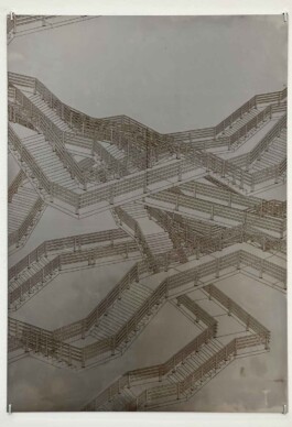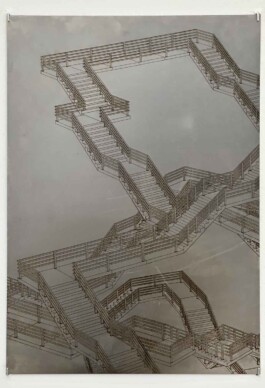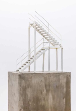 The structures form an endless pathway. Stairs that lead nowhere have lost their primary function, creating a labyrinth-like experience that evokes the realities of metropolitan life. The recurring motif of stairs also recalls the highway footbridges Akkel frequently crossed during long commutes across Istanbul.
